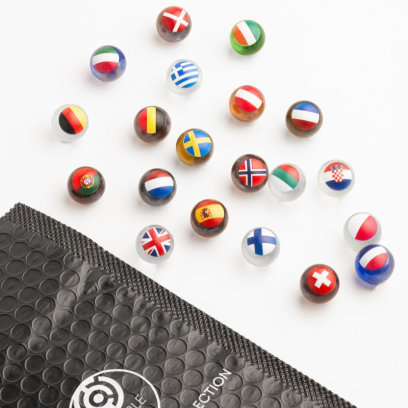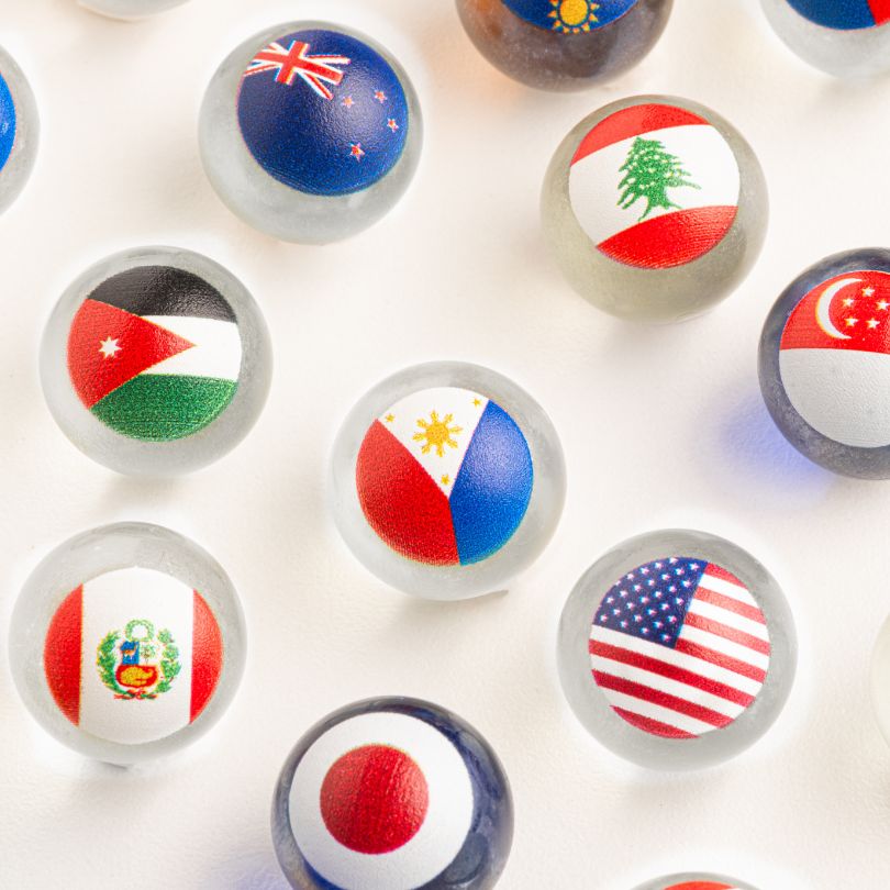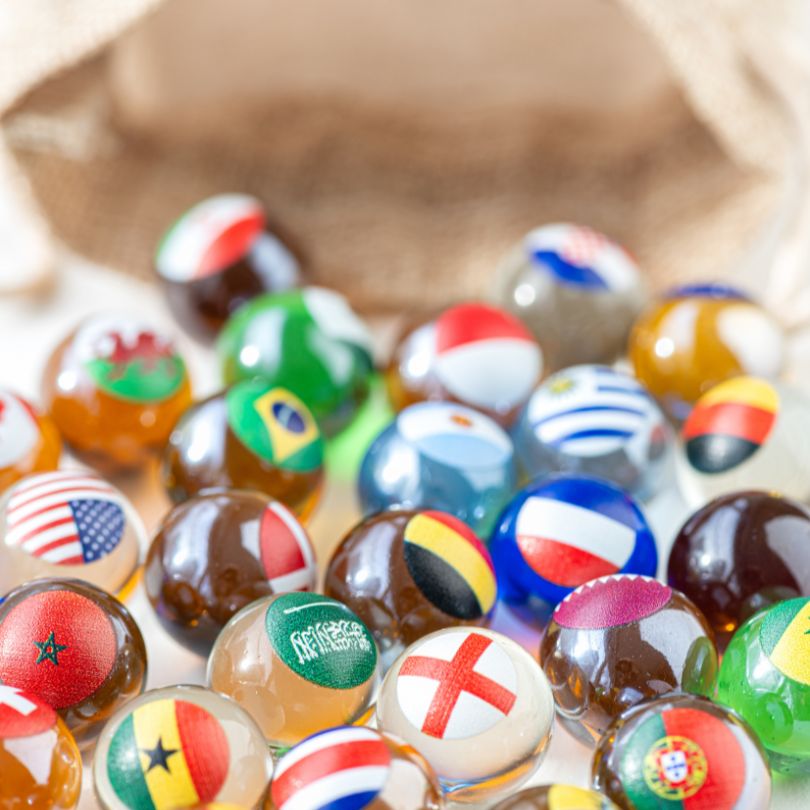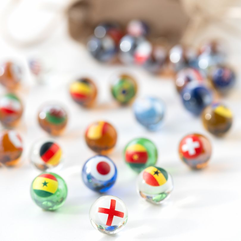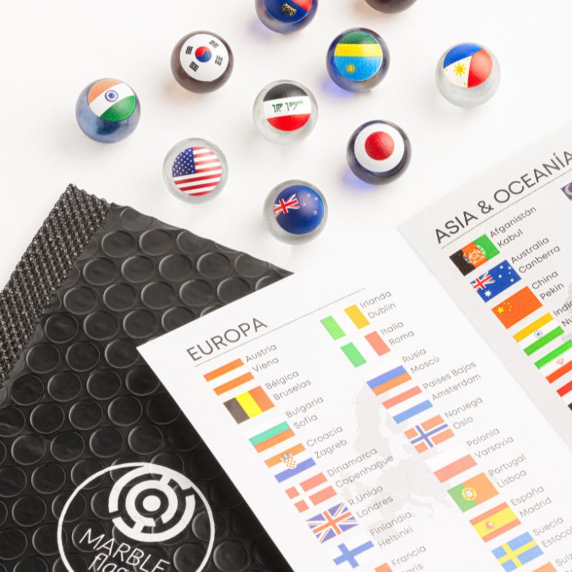 APRENDE JUGANDO CON NUESTRAS CANICAS DE CRISTAL CON BANDERAS DE ALTA CALIDAD
